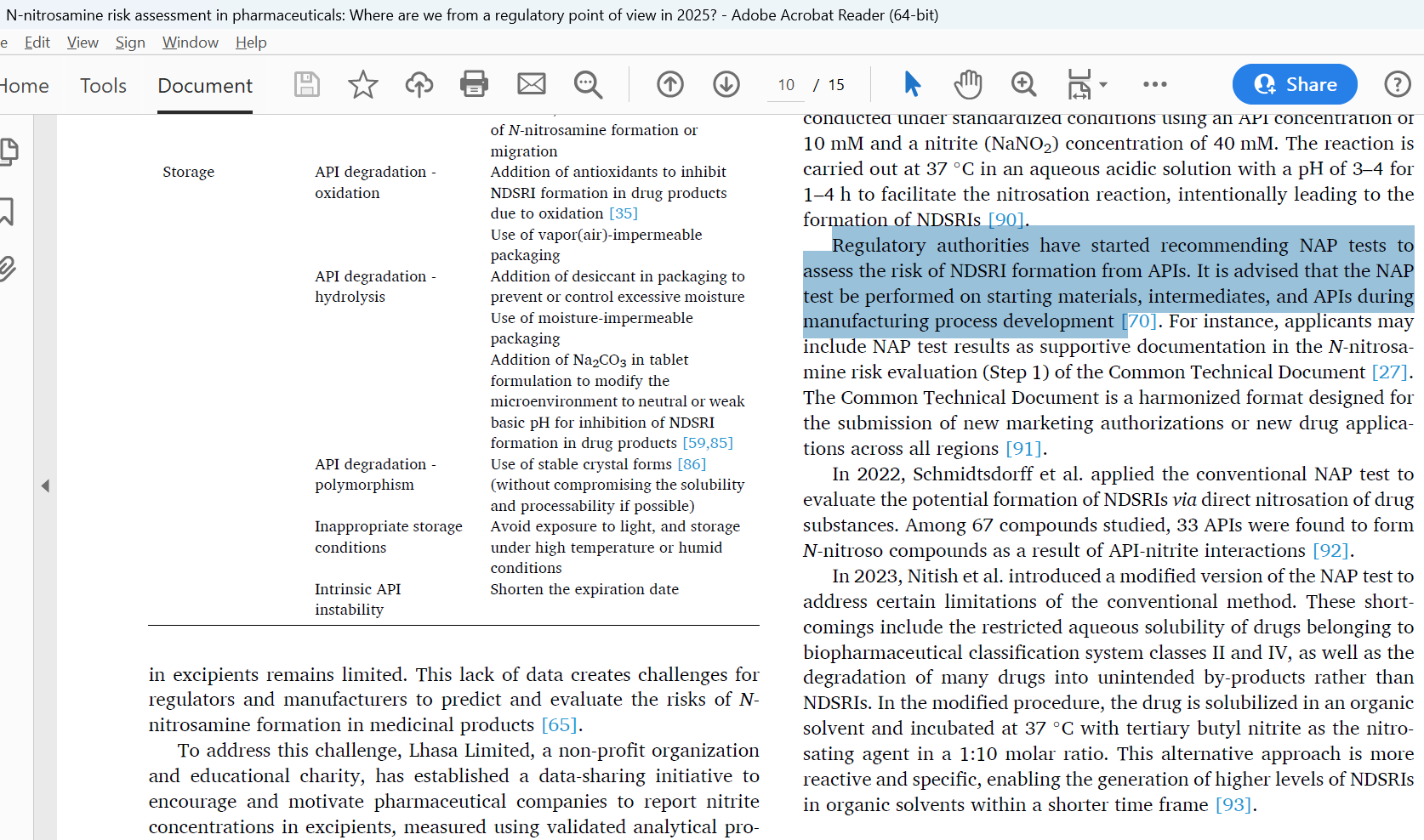 “Regulatory authorities have started recommending NAP tests to assess the risk of NDSRI formation from APIs. It is advised that the NAP test be performed on starting materials, intermediates, and APIs during manufacturing process development”