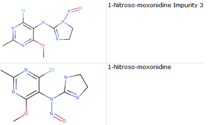 Has anyone studied “1-Nitroso-moxonidine Impurity 3” and “1-Nitroso-moxonidine”, which are listed in the EMA with both of acceptable intake value of 553 ng/day?